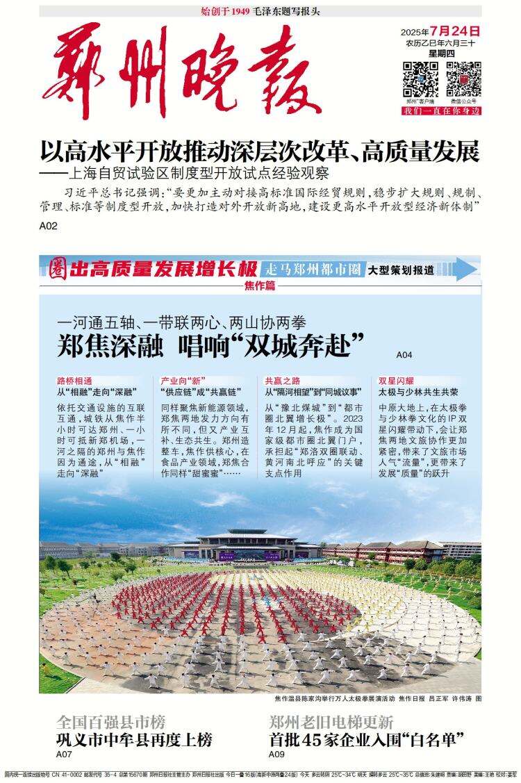 如今,随着郑焦城际铁路、郑云高速等交通动脉加速贯通,氢能源锂电池汽车产业优势互补,太极拳与少林拳文化IP双星闪耀……郑州、焦作这两座承载着厚重历史又充满创新活力的城市,正以开放的姿态相向而行、同向发力,不断拓展合作领域,唱响“双城奔赴”。