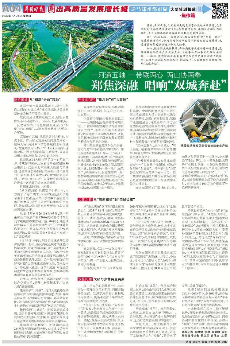 从此,郑焦两地从“隔河相望”到“同城议事”,在产业协同发展中顶格推进。
