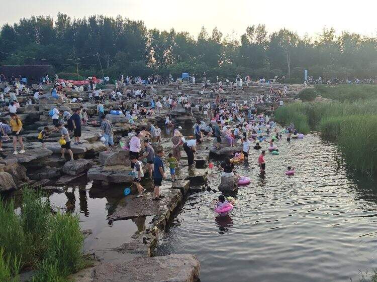 贾鲁河全段比较长,西区居民选择的游玩去处多集中在陇海路以南、南四环以北有水坝的区域,夏季天气炎热,孩子们又值暑假,漫长的河道和清凉的流水成为不少人避暑的好去处。