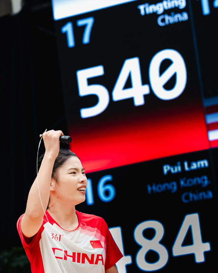 杜婷婷在2023年美国世锦赛中2次打破3分钟单摇世界纪录,当时将世界纪录定个在521个。一年后在日本的跳绳亚锦赛中再次以536个打破自己创造的世界纪录,今年在日本举行的跳绳世锦赛中,杜婷预赛以544个刷新自己一直保持的世界纪录,在决赛中奋勇一搏最终将3分钟女子世界纪录定格在552个的超高成绩。另外杜婷婷在本次比赛中还打破双摇接力和30秒预赛世界纪录。