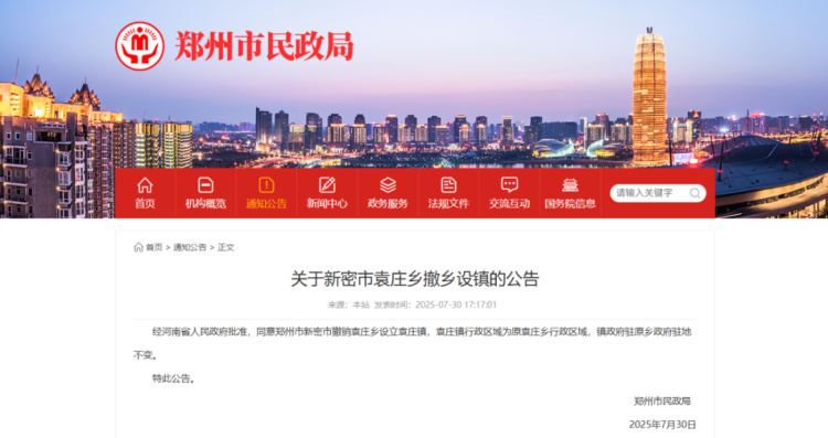 经河南省人民政府批准,同意新密市撤销袁庄乡设立袁庄镇,实行镇管村体制,原辖行政区域和政府驻地不变。