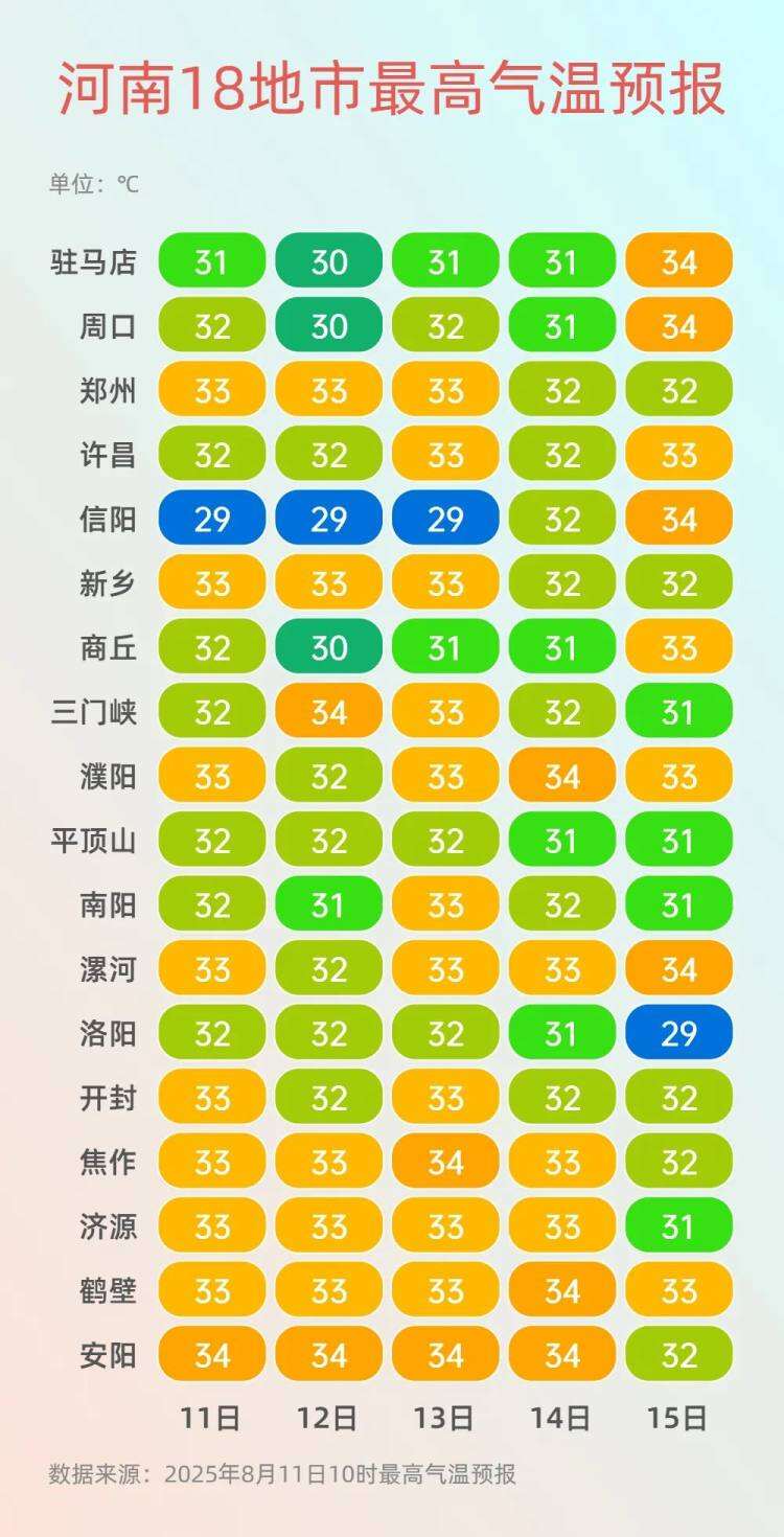 据河南气象,本周起,我省仍多降水,但相较于上周,强度明显减弱,同时高温下线。预计今起三天,降水主要在我省东部、南部,有小到中阵雨、雷阵雨,局部大雨。14日,副高加强,降水落区向我省西、北方向推进,西南部局部大雨,15日~17日西部、北中部成为主要降水区域。预计本周我省最高气温多在30℃~34℃,最低气温在20℃~24℃。