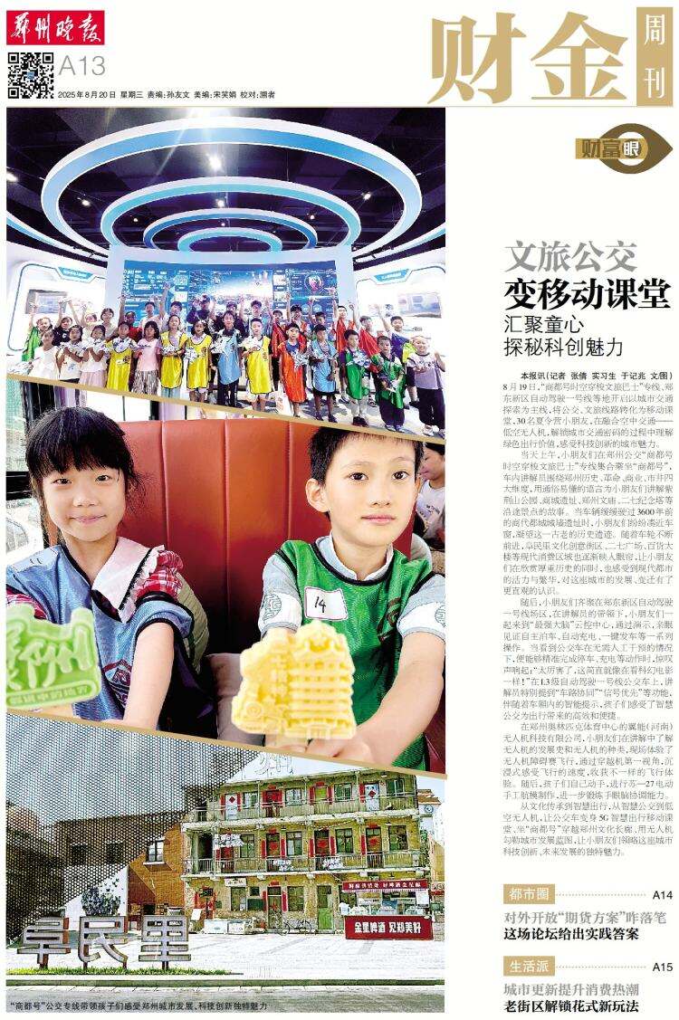 从文化传承到智慧出行,从智慧公交到低空无人机,让公交车变身5G智慧出行移动课堂、坐“商都号”穿越郑州文化长廊、用无人机勾勒城市发展蓝图,让小朋友们领略这座城市科技创新、未来发展的独特魅力。