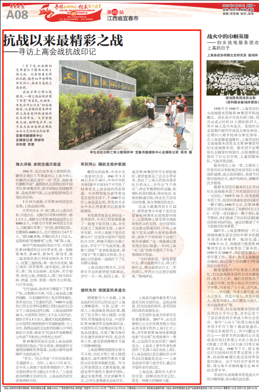 “其实,‘民众用命’不仅仅体现在交通破坏上。当时,上高人口仅12万,在中共上高地下党的带领组织下,参与支前的青壮劳力就达3万多人。”上高县政协特聘文史研究员、上高会战史研究者昝鸿祥介绍。