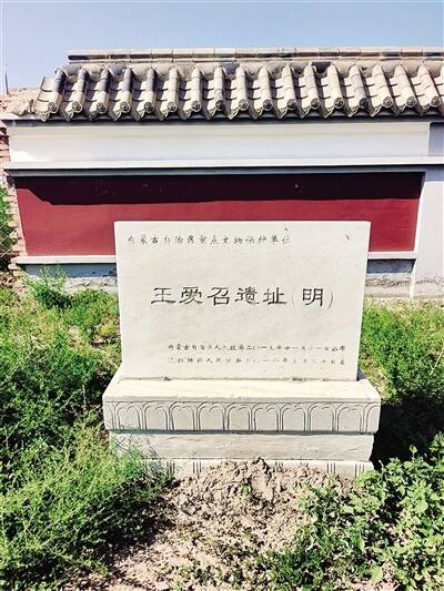 7月末,采访组一行从达拉特旗政府所在地树林召镇驱车30公里,来到了位于王爱召镇王爱召村的王爱召遗址前。眼前的遗址却只有一方宽阔的院落,院中杂草丛生,四周是新修的围墙,正面立有一座文保碑,碑身记录着王爱召于明万历三十四年兴建,清廷赐名“广慧寺”,后因鄂尔多斯领主博硕克图济农后裔受封郡王,俗称“王爱召”。原有山门、钟鼓楼、四大天王殿等,藏式建筑259间,喇嘛住房282间,居伊克昭盟寺庙之首。1941年毁于战火。通过散落在院中的残砖碎瓦和一两处断壁残垣,仍可窥见这里曾经有过寺庙建筑,可除此之外,其他地方均已是民宅,曾经辉煌的寺庙早已荡然无存。