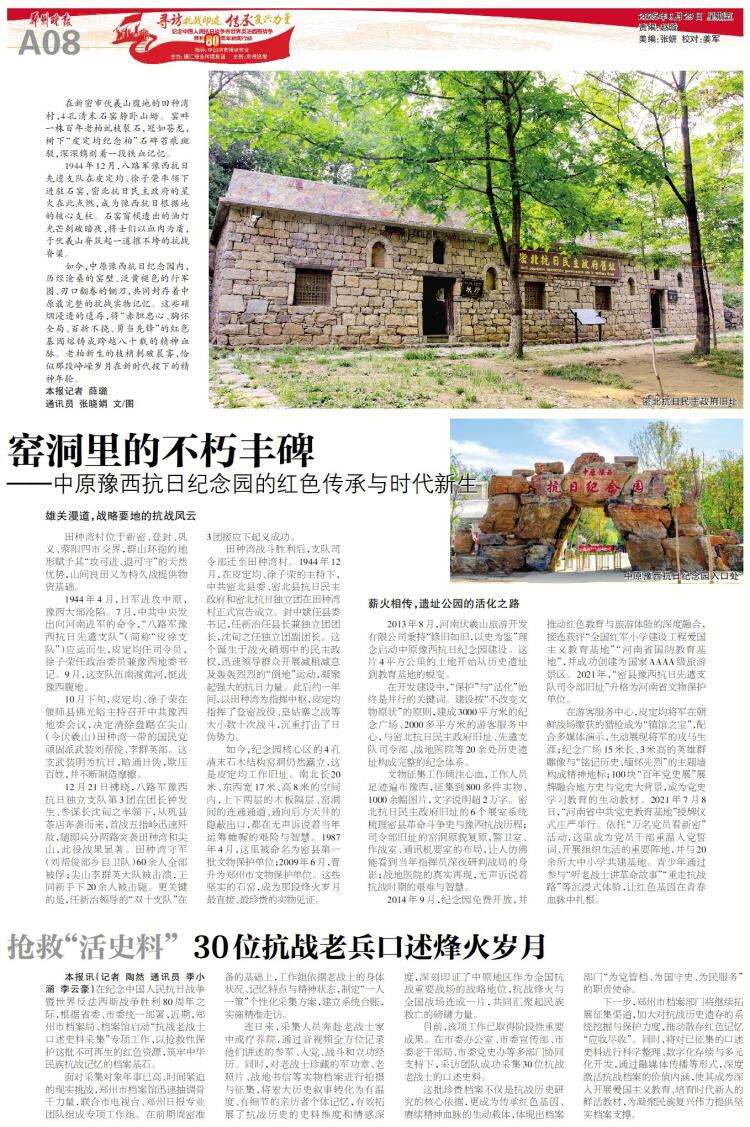 如今,中原豫西抗日纪念园内,历经沧桑的窑壁、泛黄褪色的行军图、刃口翻卷的铡刀,共同封存着中原最完整的抗战实物记忆。这些硝烟浸透的遗存,将“赤胆忠心、胸怀全局、百折不挠、勇当先锋”的红色基因熔铸成跨越八十载的精神血脉。老柏新生的枝梢刺破晨雾,恰似那段峥嵘岁月在新时代投下的精神年轮。