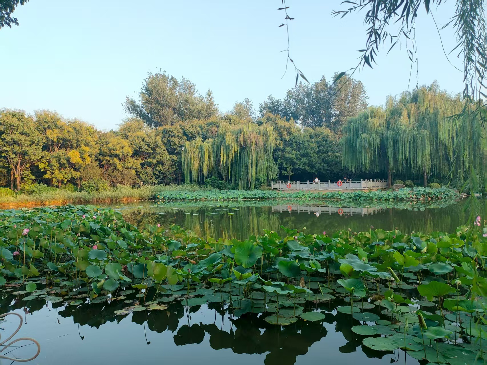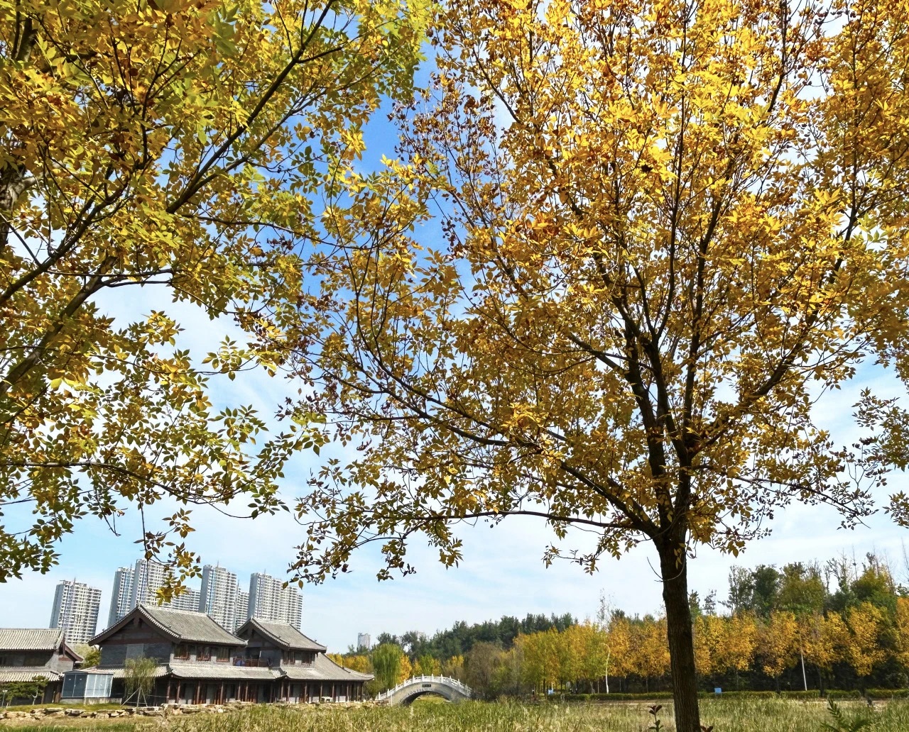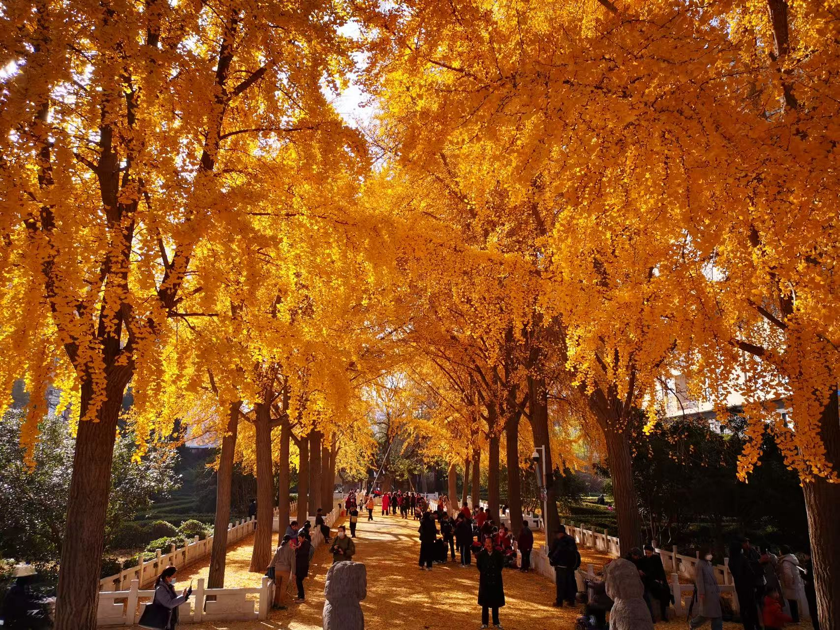 白露,是二十四节气中的第十五个节气 ,也是秋季的第三个节气。此时太阳到达黄经165度,暑气渐消,秋意渐浓。慢慢地,二七区的各大公园将陆续展开秋之画卷,人民公园的银杏树撑开了一片浓密的金色天幕,阳光穿过叶片,每一片都像是被镀了层金边,绿瓦红垣的胡公祠就坐落在银杏树后,秋日丹桂飘香,金叶的花石榴硕果累累;郑州树木园里,秋意已满满浸透每一个角落,红枫似火,银杏如金,梧桐的叶子在阳光下泛着绿光,走在林间小道上,听着脚下落叶的声响,鼻尖萦绕着草木的清香;南环公园内栾树正把秋意铺得热闹,湖边的芦苇丛已染上了浅褐,偶有白鹭从水面掠过,翅膀带起的涟漪把岸边的秋树倒影晃成了一片流动的色彩;南水北调生态文化公园的铁轨旁,银杏叶正铺成金色的地毯,沿着铁轨慢慢走,仿佛能走到时光的尽头,抬头是湛蓝的天空,低头是落叶的私语,就像在诉说着秋天的故事。