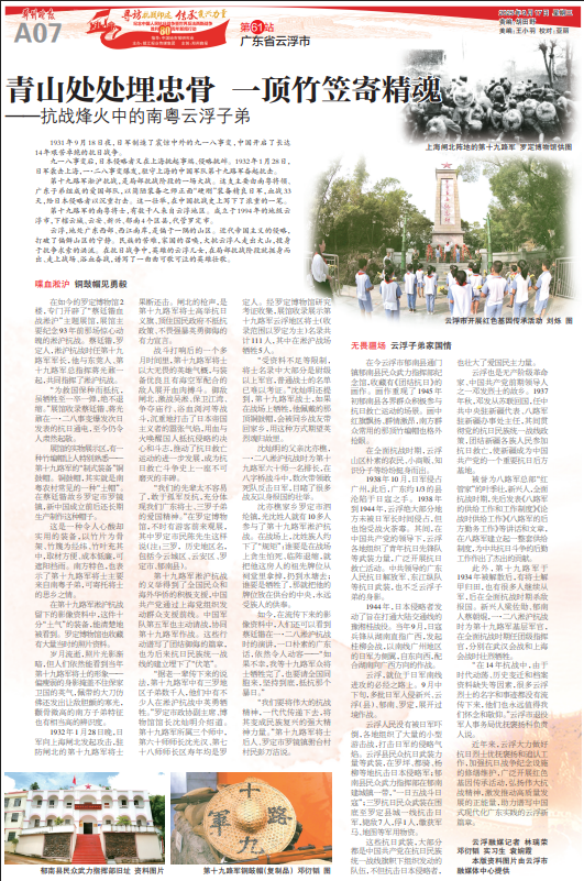 第十九路军的南粤将士,有数千人来自云浮地区。成立于1994年的地级云浮市,下辖云城、云安、新兴、郁南4个区县,代管罗定市。