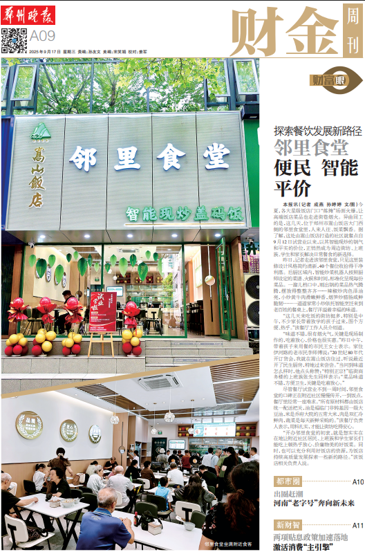 今夏,各大星级饭店门口“练摊”场面火爆,让高端饭店菜品也走进街巷烟火。异曲同工的是,这几天,位于郑州市嵩山饭店大门西侧的邻里食堂里,人来人往、饭菜飘香。据了解,这处由嵩山饭店打造的社区就餐点自9月12日试营业以来,以其智能现炒的锅气和平实的价位,正悄然成为周边街坊、上班族、学生和家长解决日常餐食的新选择。