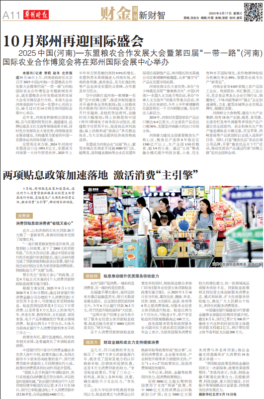 9月起,两项贴息政策加速落地,通过对个人消费贷款和服务业经营主体贷款进行补贴,直接惠及广大居民和经营主体,激活消费“主引擎”,释放增长新动能。