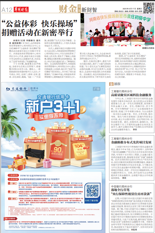 9月16日,记者从国家金融监督管理总局河南监管局获悉,为期一周的河南2025年金融教育宣传周于9月15日正式拉开帷幕,本次活动以“保障金融权益 助力美好生活”为主题,让金融知识如秋收硕果般惠及千家万户,用贴心服务为群众的钱袋子系上“安全带”。