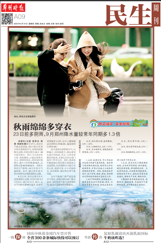 9月郑州降水量较常年同期多1.3倍