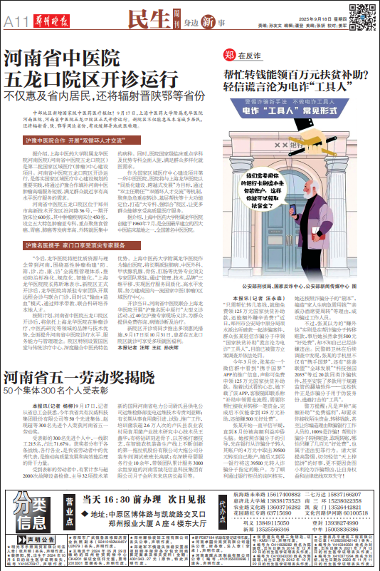 中部地区新增国家级中医药医疗枢纽!9月17日,上海中医药大学附属龙华医院河南医院、河南省中医院五龙口院区正式开诊运行。新院区不仅能惠及本省城乡居民,还将辐射晋、陕、鄂等周边省份,有效缓解异地就医难题。