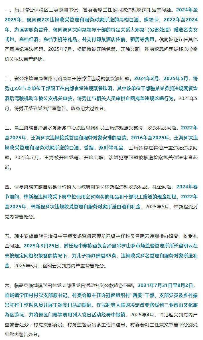 9月21日,海南通报六起违反中央八项规定精神典型问题: