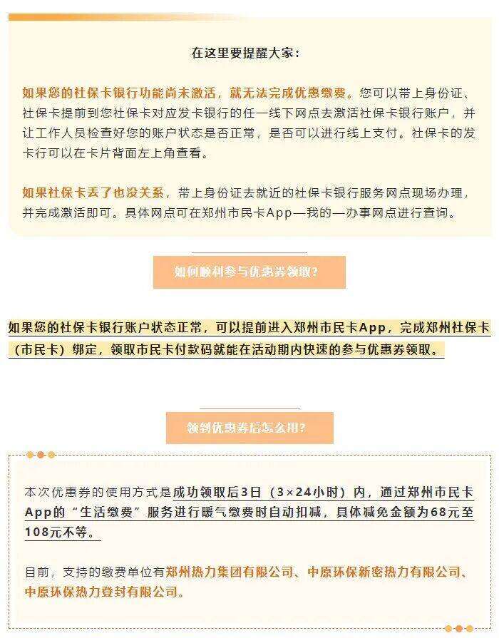 9月22日,2025年郑州社保卡(市民卡)暖气缴费随机立减活动即将开始,据悉,本次活动的优惠力度为68元至108元,具体如何参与?怎样才能顺利享受优惠?戳↓↓↓