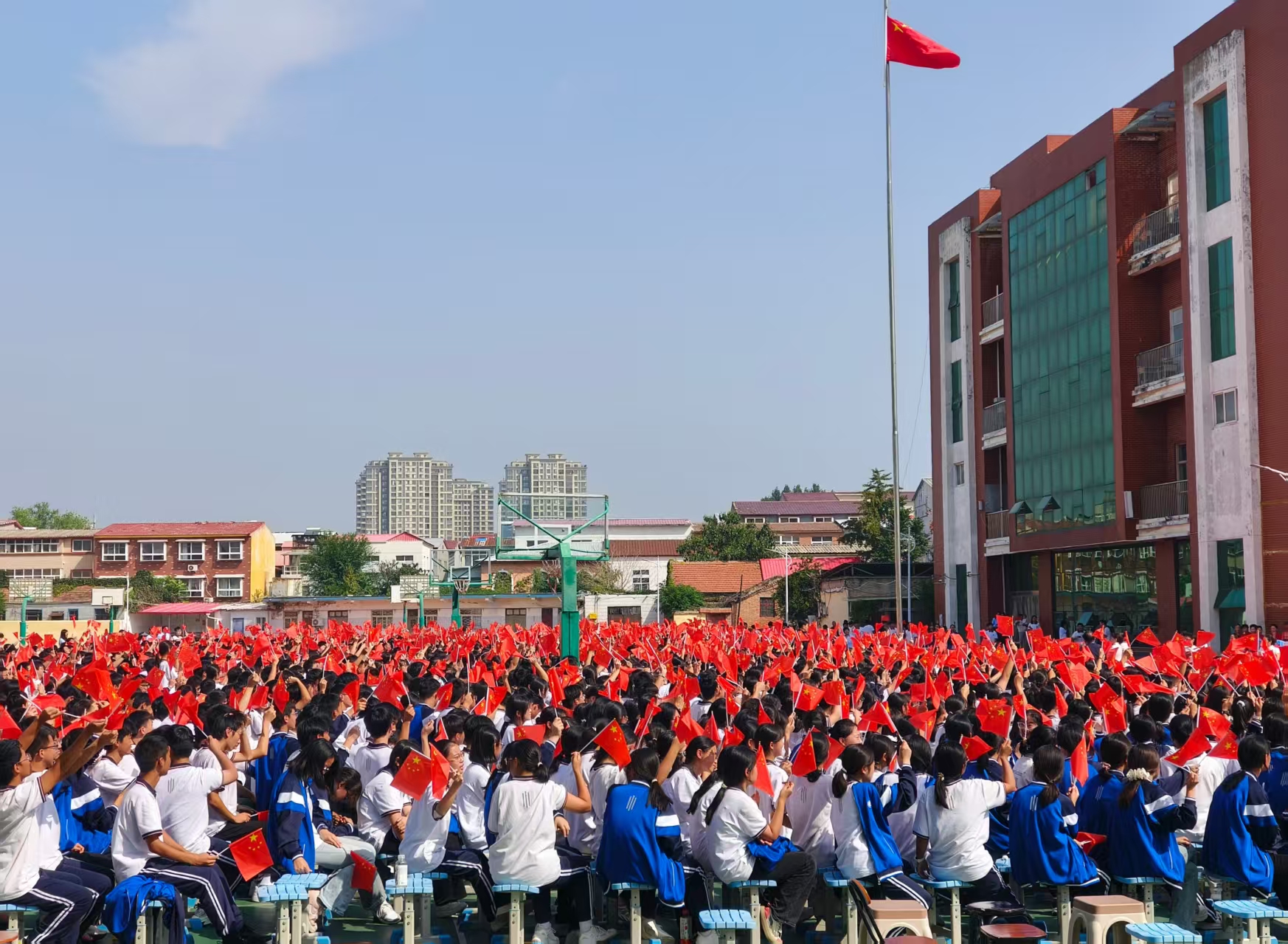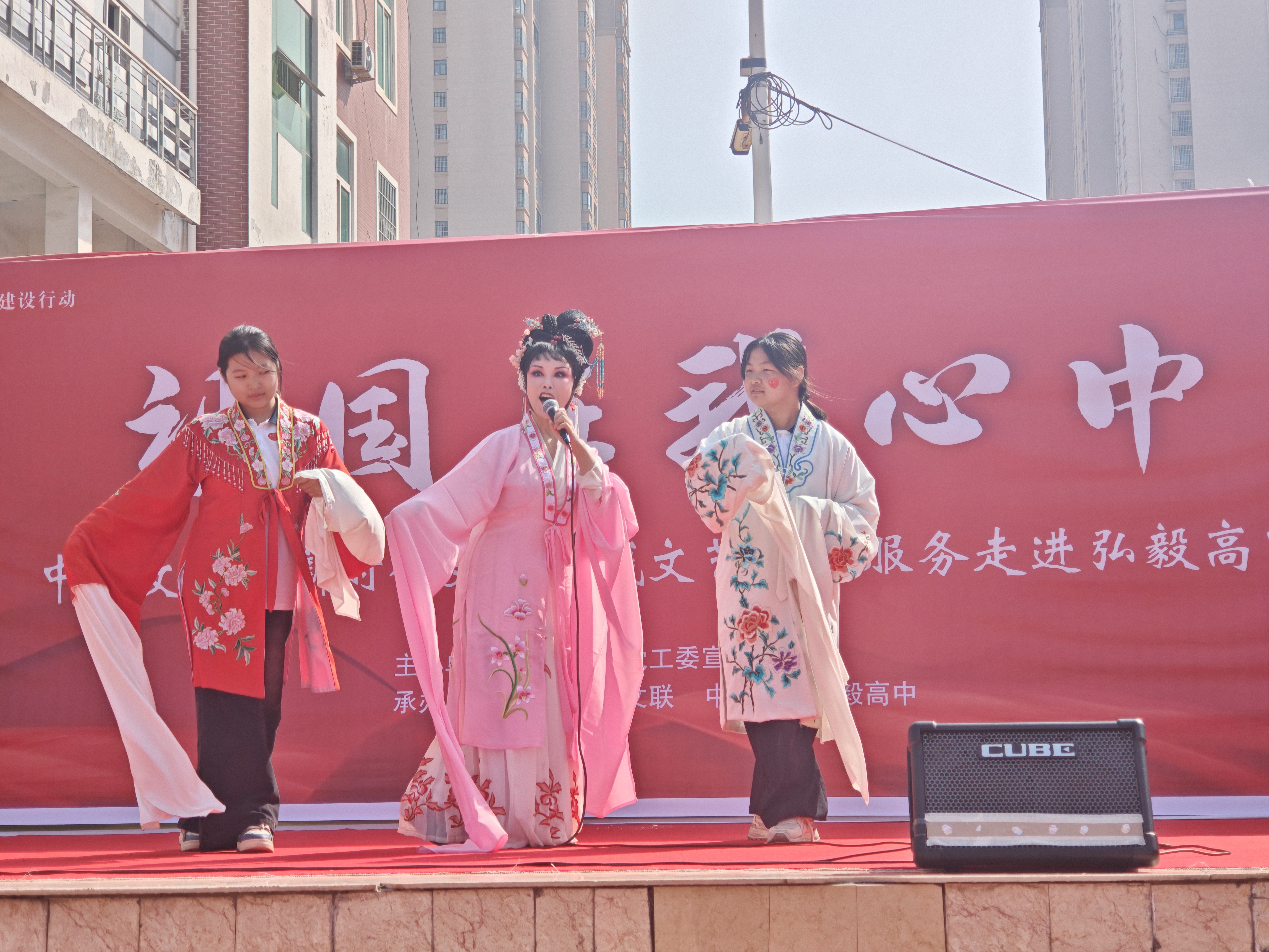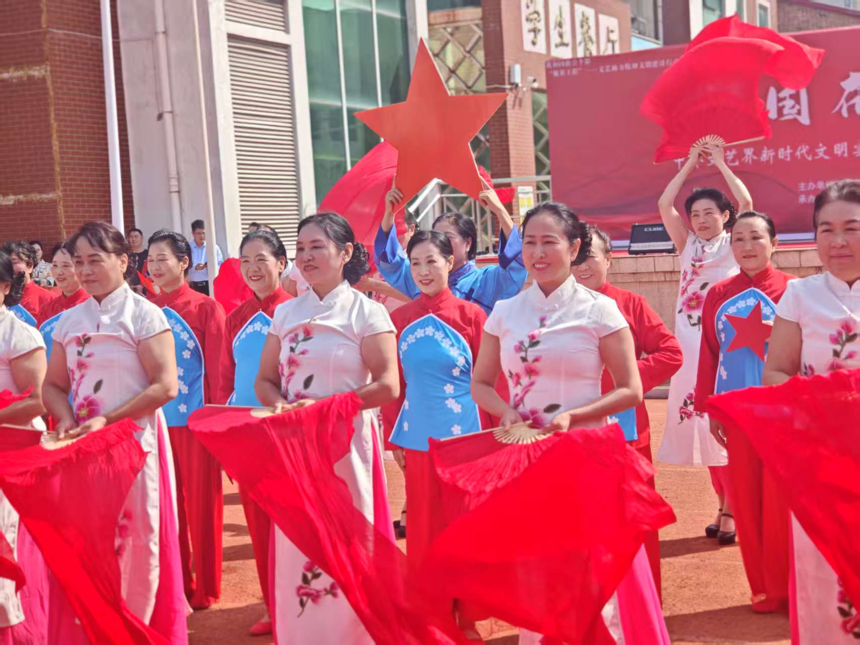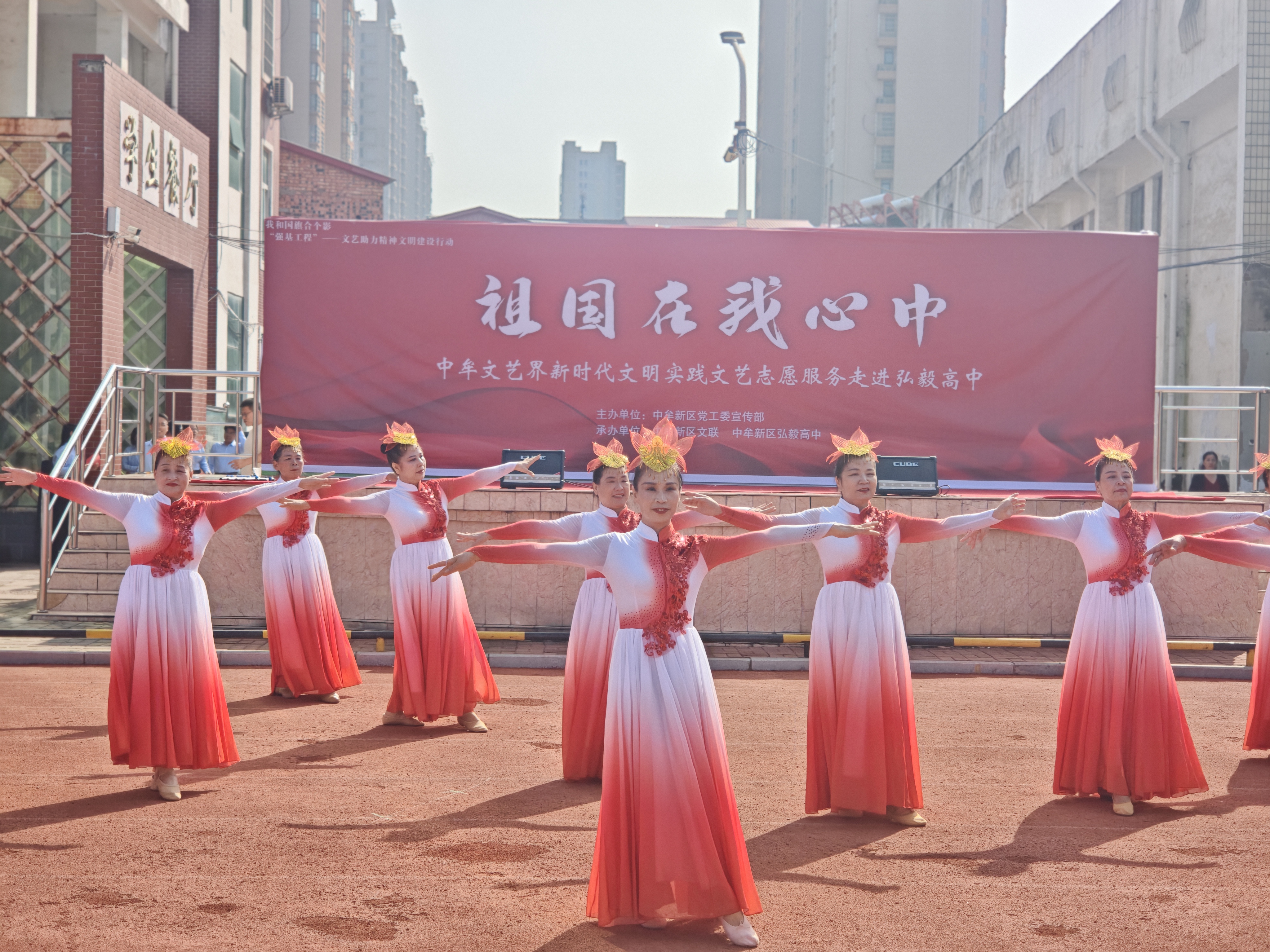 9月30日上午,由中牟新区党工委宣传部主办,中牟新区文联、中牟新区弘毅高中承办的“祖国在我心中”迎国庆文艺汇演在弘毅高中操场举行。全校师生与特邀嘉宾欢聚一堂,以一场融汇家国情怀与青春风采的艺术盛宴,共同为祖国庆生,向伟大的祖国母亲献上最深情的告白。