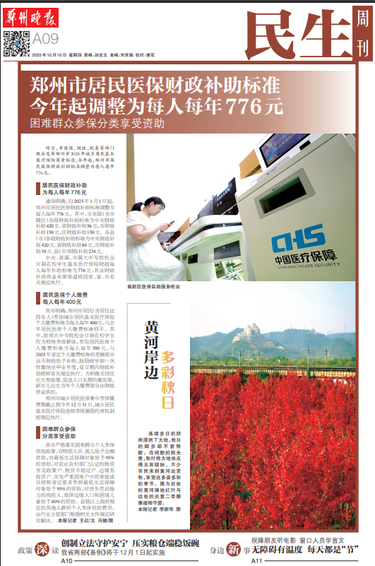 昨日,市医保、财政、税务等部门联合发布郑州市2025年城乡居民基本医疗保险筹资标准,今年起,郑州市居民医保财政补助标准调整为每人每年776元。