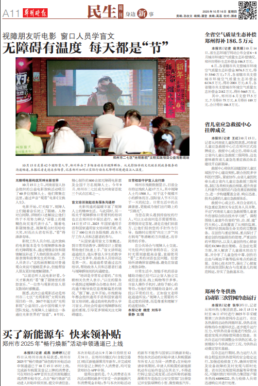 10月15日是第42个国际盲人节,郑州举办了多场活动关怀视障群体。从光影陪伴的文化娱乐到政务服务的沟通畅通,本报记者走进这些场景,记录郑州如何以实际行动为无障碍环境建设注入温度。
