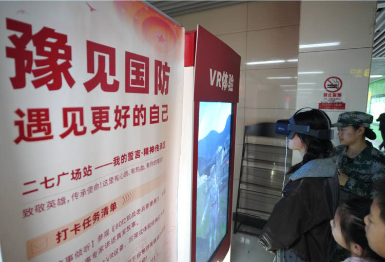 为深化全民国防教育,弘扬爱国主义精神,10月19日,由中共河南省委宣传部全民国防教育处等单位联合主办的“豫见国防”全民国防教育沉浸式体验活动在郑州地铁二七广场站成功举办,为出入站的市民游客准备了一场内容丰富的国防教育沉浸式体验活动。