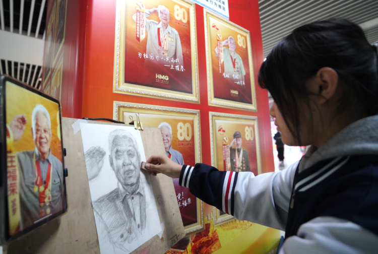 据记者了解,本次活动由VR穿越、故事倾听、誓言留言三个部分组成。在VR穿越体验活动中,参与者会戴上VR眼镜,回到硝烟与战火纷飞的抗战年代,体验革命先辈保家卫国的艰辛;在“故事倾听”环节,市民朋友可以通过观看“豫见国防·80位抗战老兵影像展”,感受抗战历史与现代公共空间的巧妙融合;在“誓言留言”环节,参与市民可以用五彩水笔在卡纸上留下自己对祖国的深情祝福,并亲手贴在“万里长城”的展板之上。