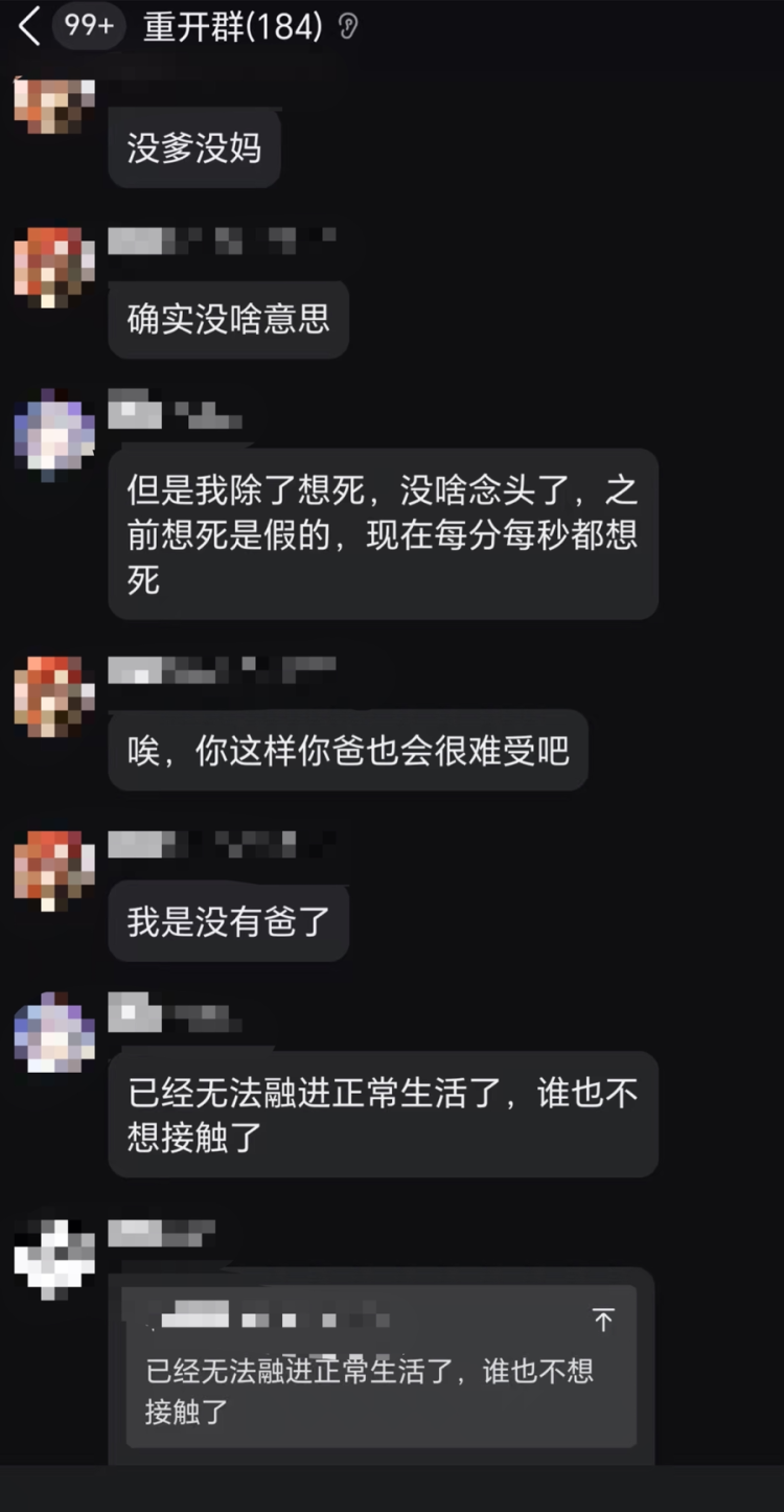 青少年在“重开群”中诉说负能量