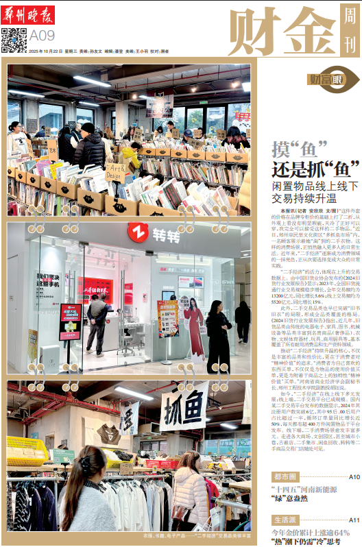 “这件外套的价格在品牌专柜价的基础上打了二折,从外观上看没有明显瑕疵,天冷了正好可以穿,我完全可以接受这样的二手物品。”近日,郑州阜民里文化街区“多抓鱼市场”内,一名顾客展示着她“淘”到的二手衣物。这样的消费场景,正悄然融入更多人的日常生活。近年来,“二手经济”逐渐成为消费领域的一抹亮色,正从次要选择变成大众的日常实践。