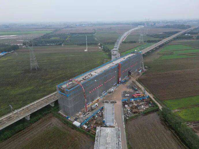 10月21日,经过9个小时的连续浇筑,平漯周高铁全线首个涉铁连续梁——商周特大桥跨郑阜高铁转体T构连续梁顺利完成混凝土浇筑。标志着由中铁七局承建的平漯周高铁站前八标所有连续梁主体结构已全部完工,为后续架梁施工奠定了坚实基础。