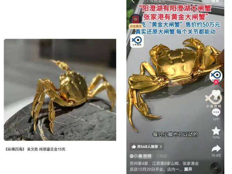 近日,珠宝设计师、非遗传承人吴文胜爆料,其耗时近两年设计的“黄金大闸蟹”作品疑似被仿制,出现在10月20日开业的张家港山姆会员店,售价超50万元(509克,按当前金价计算)。10月27日,吴文胜表示已在10月21日维权,张家港市版权局已介入;山姆回应称已提交供应商材料研判侵权问题,涉事产品已下架。