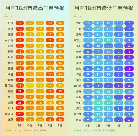 今天夜间,河南西部、南部转小雨或零星小雨;6日~7日,降水范围扩大至全省,其中黄河以南有中雨,局部大雨。8日,降雨范围缩小,主要在南部有小雨或零星小雨。6日~8日,全省多大风天气,大部地区阵风将会达到5级以上,其中,明天,西部、北中部、东南部局部阵风6到7级;7日,全省大部阵风5到6级。8日白天,全省阵风5级左右。受降水影响,预计明后两天的最高气温有4℃左右的下降,同时叠加大风+降雨,湿冷感明显,体感温度较低。