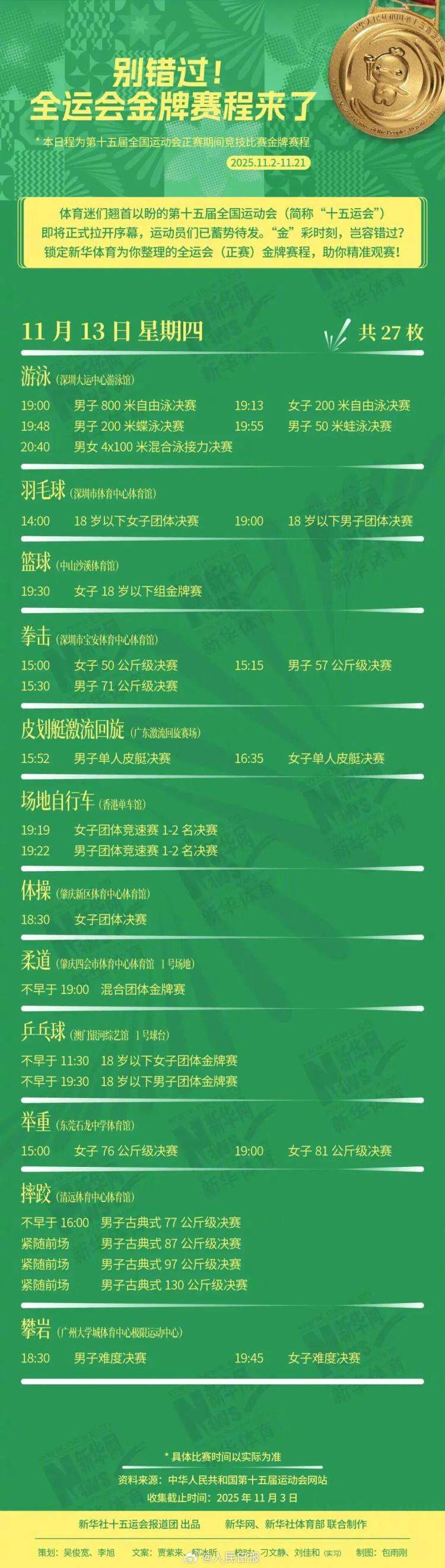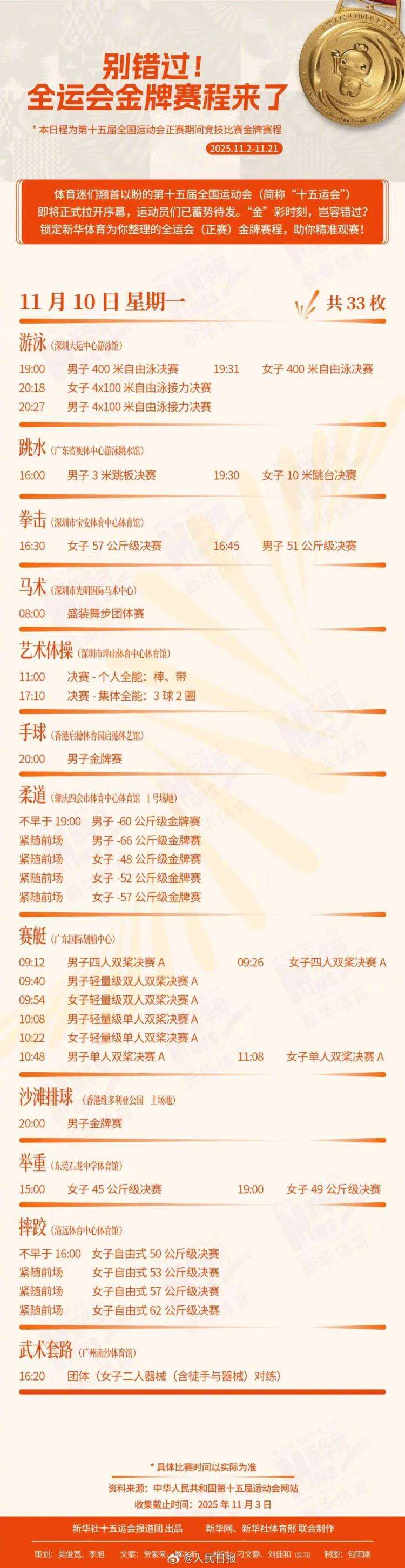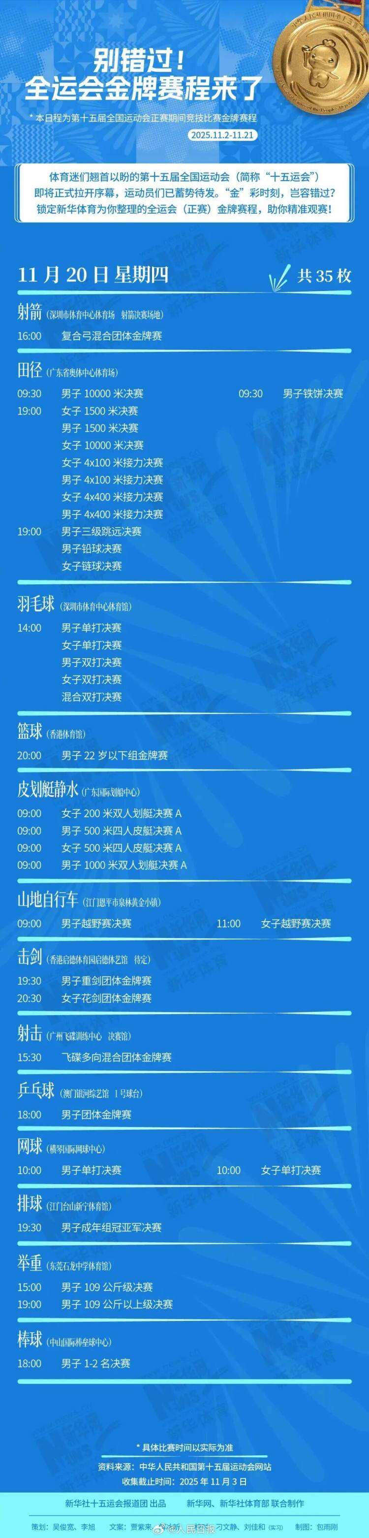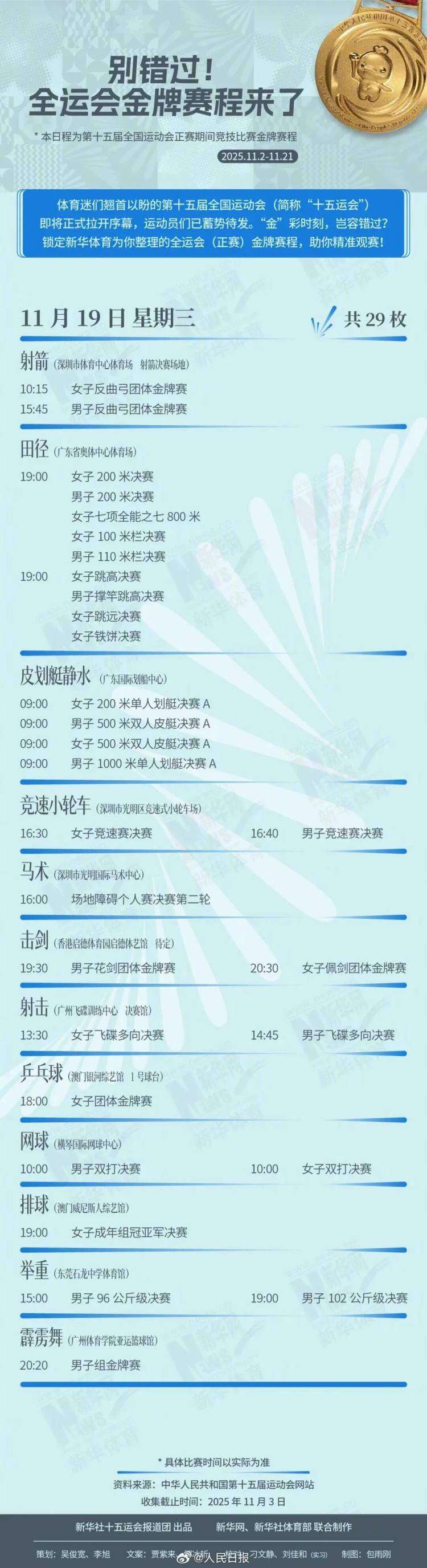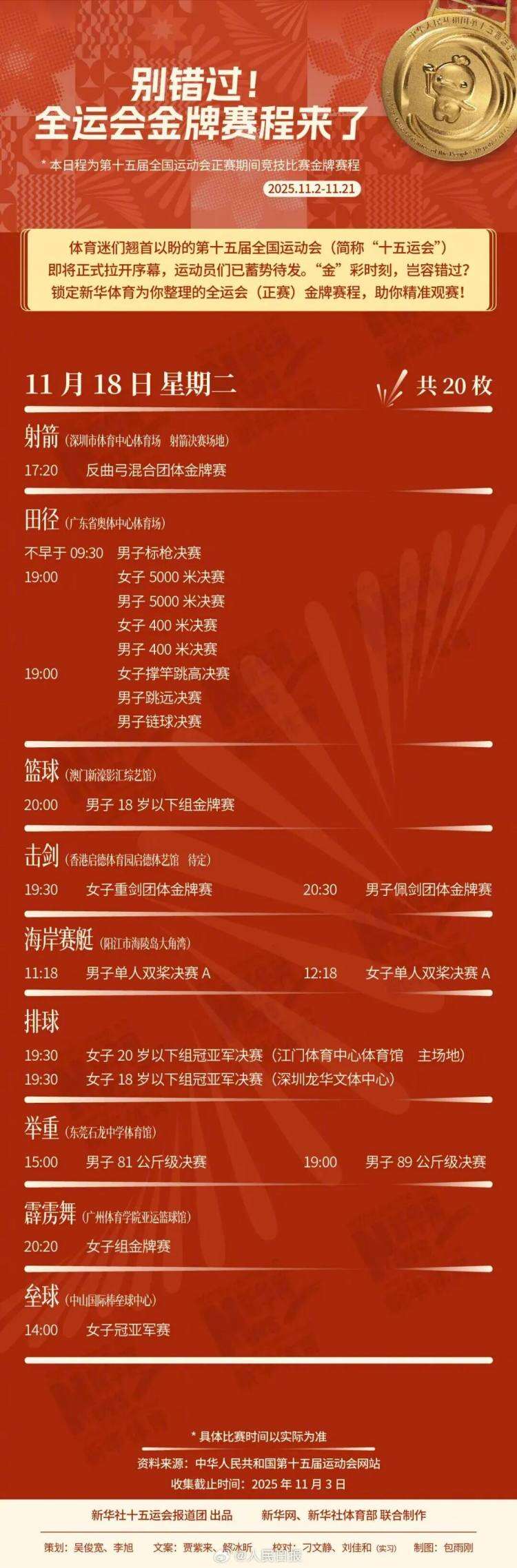 十五运会即将正式拉开序幕,运动员们已蓄势待发。别错过,快收藏这份全运会(正赛)金牌赛程!