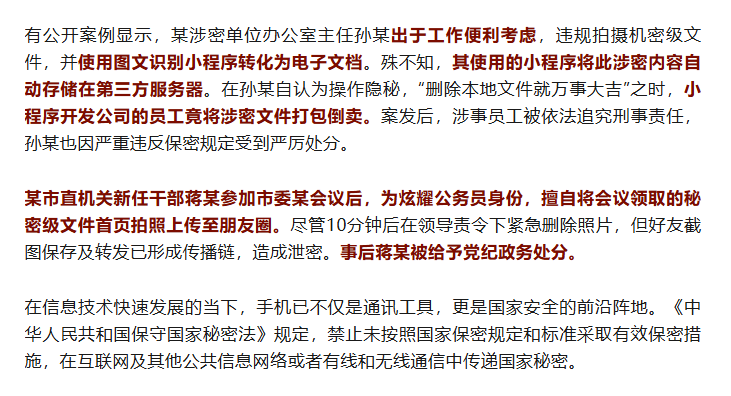 11月5日,“国家安全部”微信公众号发布案例,提醒警惕指尖上的泄密风险: