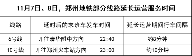11月7日、8日,郑州奥林匹克体育中心将举行大型活动,郑州地铁部分线路末班车时间延长。