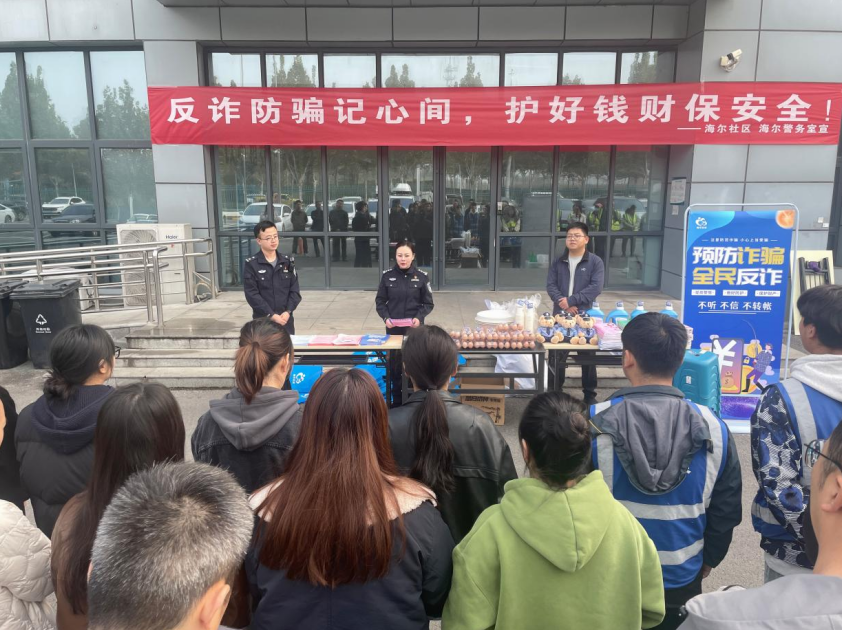 为有效提升辖区群众防范电信网络诈骗的意识和能力,切实守护群众的“钱袋子”,近日,经开区潮河办事处海尔社区在辖区宝海物流园联合潮河派出所共同举办“反诈防骗记心间,护好钱财保安全”主题宣传活动。