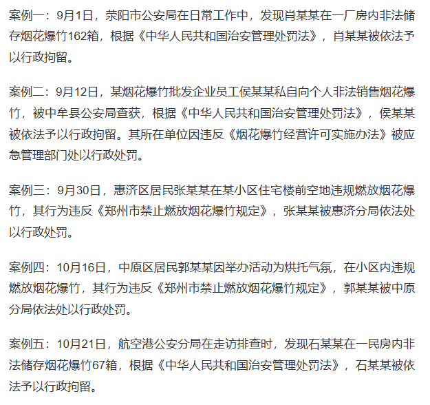 近日,郑州市公安局部署开展烟花爆竹专项整治,严厉打击涉烟花爆竹违法犯罪,并公布了近期查处的5起典型案例。