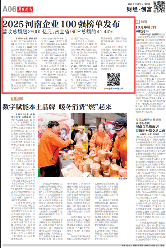 报告显示,2025河南百强企业作为区域经济的“压舱石”,在高质量发展道路上迈出新步伐,呈现以下亮点: