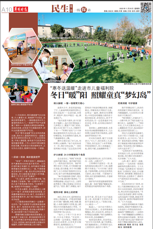 11月的郑州,朔风裹着霜气扫过街巷,行人裹紧大衣、缩着脖子往前赶,连脚步都带着寒气。一脚刚踏进郑州市儿童福利院的大门,一股暖乎乎的气息便撞了满怀——混着阳光晒透的棉絮味、淡淡的药香,还有孩子们清脆的笑声,把外头的凛冽挡得严严实实。