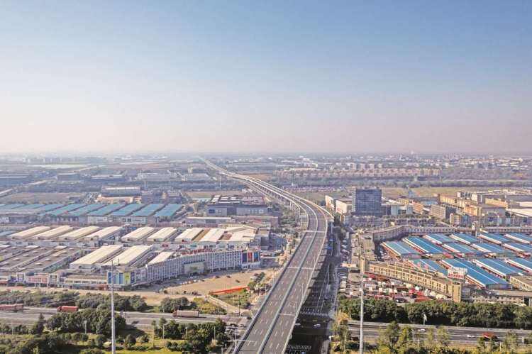 作为机场快速路的关键一段,320国道建陶市场项目全长7.8公里,采用“主线高架+地面辅道”的双层设计。主线双向六车道,待项目建成后,从嘉兴主城区到机场的车程将缩短至10分钟以内,到桐乡城区也仅需20分钟。