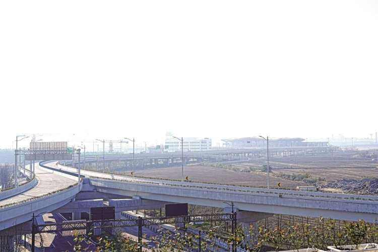 城市向西,高架桥的触角不断延伸,通往机场的“空中廊道”轮廓尽显。