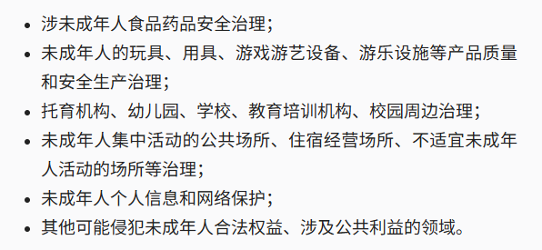 11月27日,最高检发布未成年人保护公益诉讼工作指引,明确办案六大重点领域。
