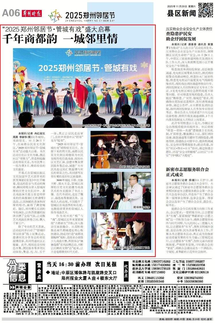 初冬暖阳,戏韵悠长。11月28日下午,在商都阜民里文化街区,“2025郑州邻居节·管城有戏”活动盛大启幕。本次活动旨在以文化为媒,激活社区“邻聚力”,营造和睦融洽的邻里关系,为市民奉上一场为期3天、精彩纷呈的文化盛宴。