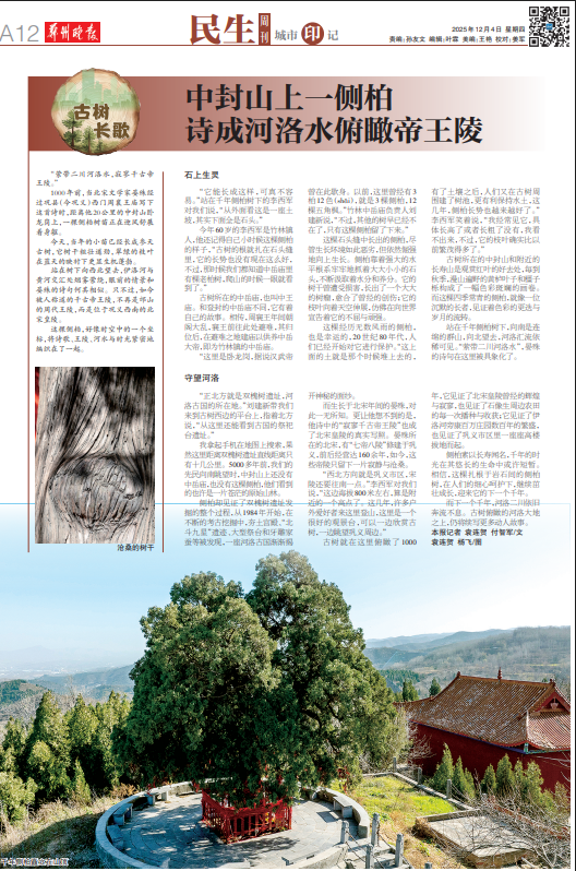 站在千年侧柏树下,向南是连绵的群山,向北望去,河洛汇流依稀可见。“萦带二川河洛水”,晏殊的诗句在这里被具象化了。
