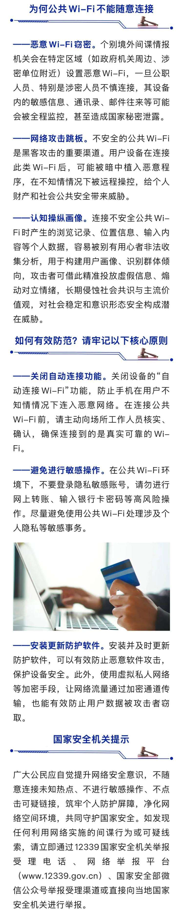 国家安全部披露:境外间谍情报机关在政府周边等特定区域设置恶意Wi-Fi,公职人员若不慎连接,敏感信息或被全程监控。