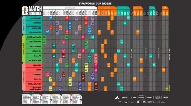 国际足联6日公布了2026年美加墨世界杯的完整赛程,揭幕战与决赛分别于北京时间6月12日、7月20日凌晨3点打响。该版赛程所有标注的时间均为夏令时的北美东部时间,届时将与北京时间相差12小时。