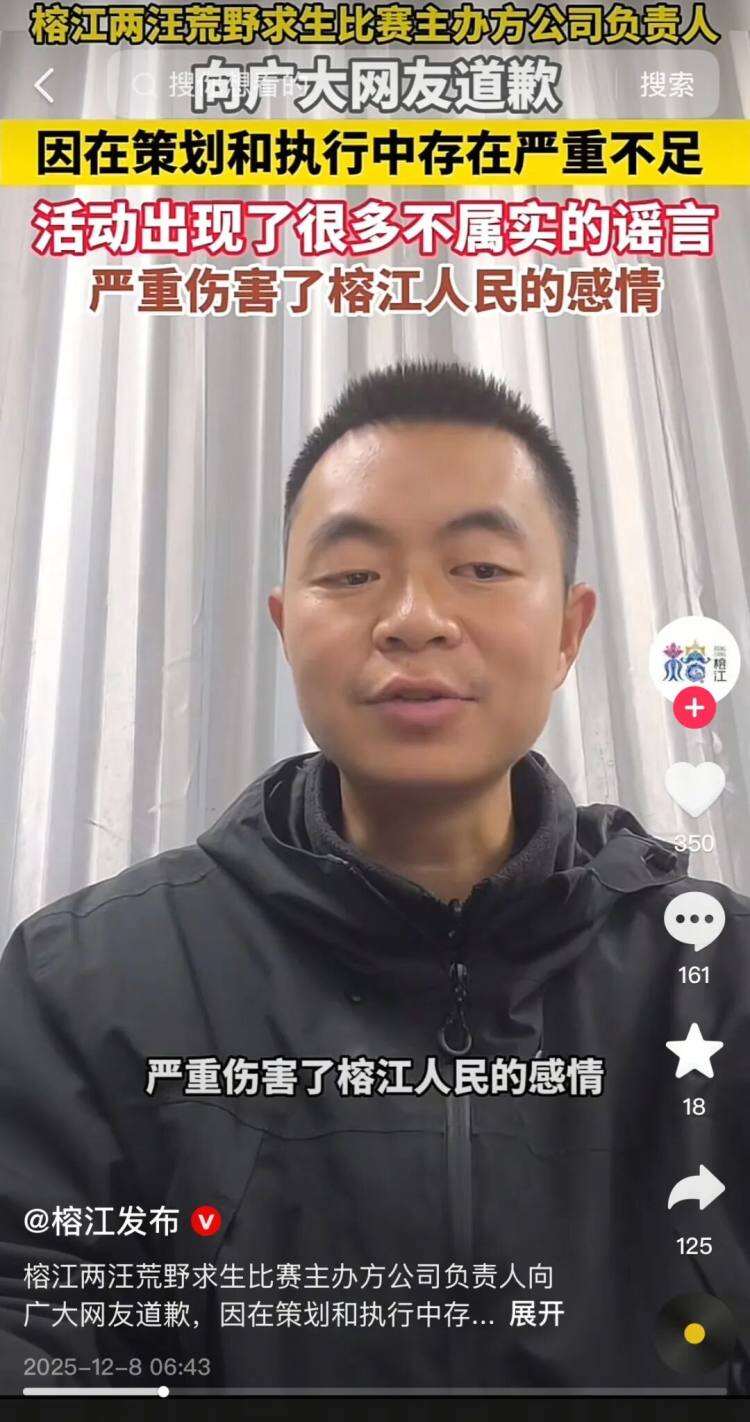 12月7日,在贵州榕江,榕江版“荒野求生赛”被曝有安全员摸女选手,还有选手违规作弊。8日,贵州榕江“荒野求生赛”主办方致歉:策划和执行中存在严重不足;求生赛1号选手道歉:“安全员骚扰女选手”是不实言论。