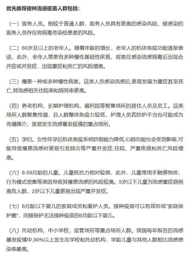 12月9日,郑州市疾控中心发布健康提醒:优先推荐8类人群接种流感疫苗: