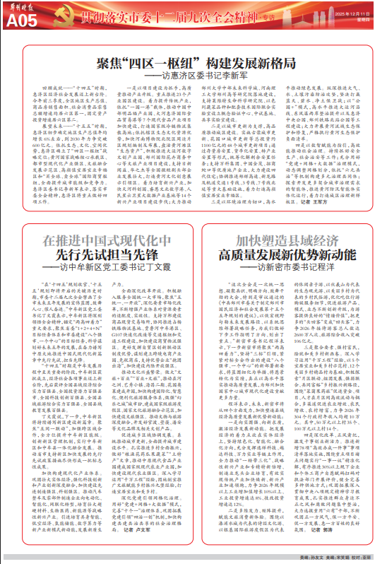 “在‘十四五’规划收官、‘十五五’规划即将开启的关键历史时期,市委十二届九次全会擘画了全市未来五年发展的宏伟蓝图,鼓舞人心、催人奋进。”中牟新区党工委书记丁文霞表示,中牟新区将深刻领悟全会精神,锚定“两高四着力”重大要求,聚焦省委“1+2+4+N”目标任务体系和市委建设“八个强市、一个中心”的目标任务,科学谋划好未来五年的发展,在奋力谱写中原大地推进中国式现代化新篇章中先行先试、担当先锋。