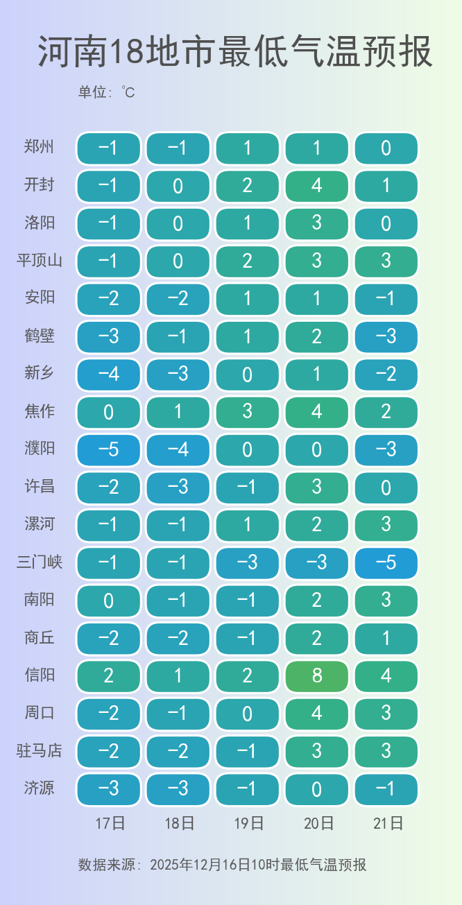 16日~19日,河南大部将维持晴天或多云。周五,河南多地午后气温升至15℃~18℃,信阳等地甚至超过20℃。但周末,一股强冷空气抵达河南,多地最高气温累计降幅达10℃左右。伴随着气温跳水,黄河以南多地预计会再次迎来雨雪天气。特别提醒:17日~19日,郑州有中度到重度霾,对于呼吸道敏感的人,出门戴好口罩。