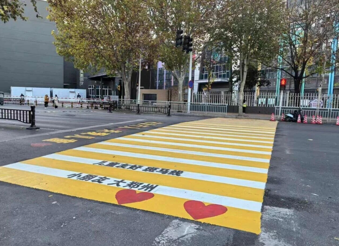2025年,郑州市公安局、市妇联、市城建局、市城管局联合推进儿童友好斑马线划设工作,64条兼具颜值与实用性的斑马线遍布全市16个开发区、区县(市)。斑马线含“注意观察两侧来车”“礼让行人 关爱儿童”的暖心提示语与“见郑友好 童创未来”“小朋友 大郑州”的童趣标语,获市民认可,郑州将持续深化儿童友好城市建设。