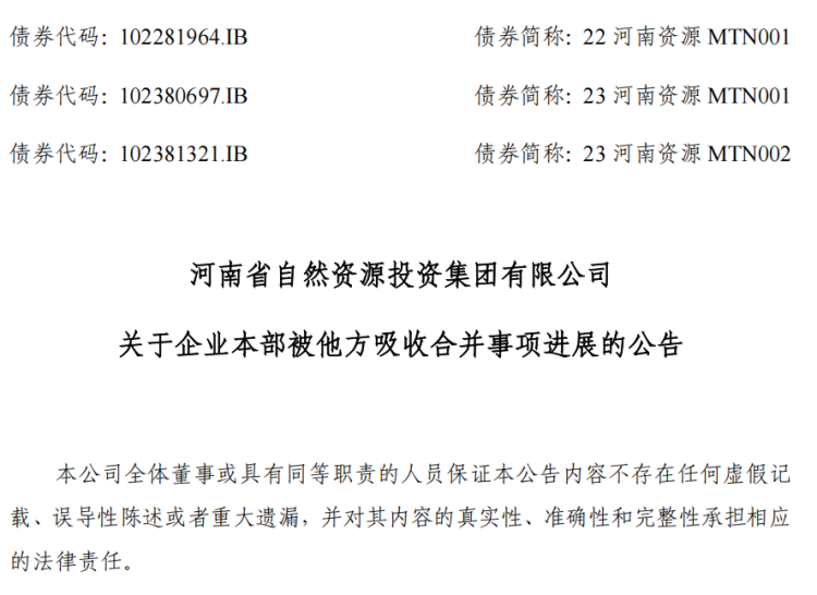 12月17日,河南省自然资源投资集团有限公司发布公告称,已与中国河南国际合作集团有限公司签订吸收合并协议。本次吸收合并完成后,河南国际集团作为存续公司,将继续保留法人资格,依法开展经营活动。河南资源集团将依法注销法人资格。河南国际集团将按照省管重要骨干企业(商业一类)管理,并成为河南省属唯一外经企业。