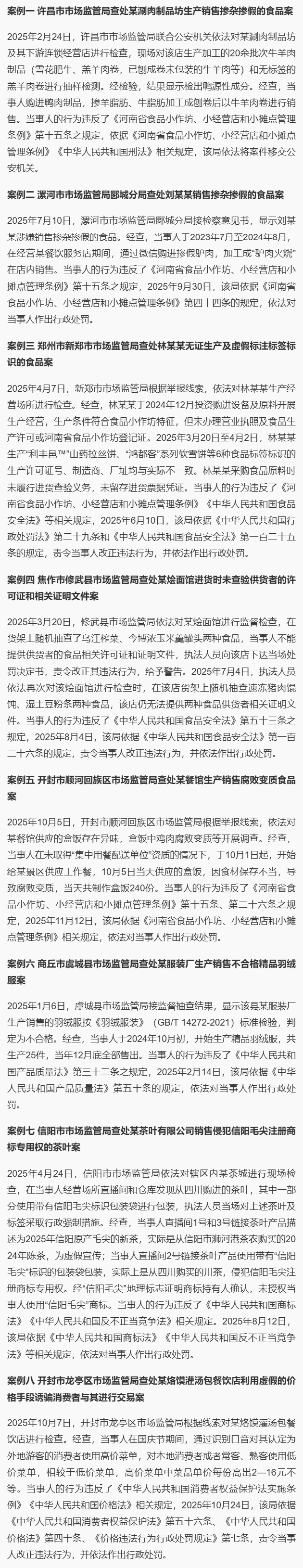 掺杂掺假、无证生产......2025年,河南省市场监管部门聚焦消费领域突出问题,深入开展“守护消费”铁拳行动,查处了一批与群众利益息息相关的违法案件。